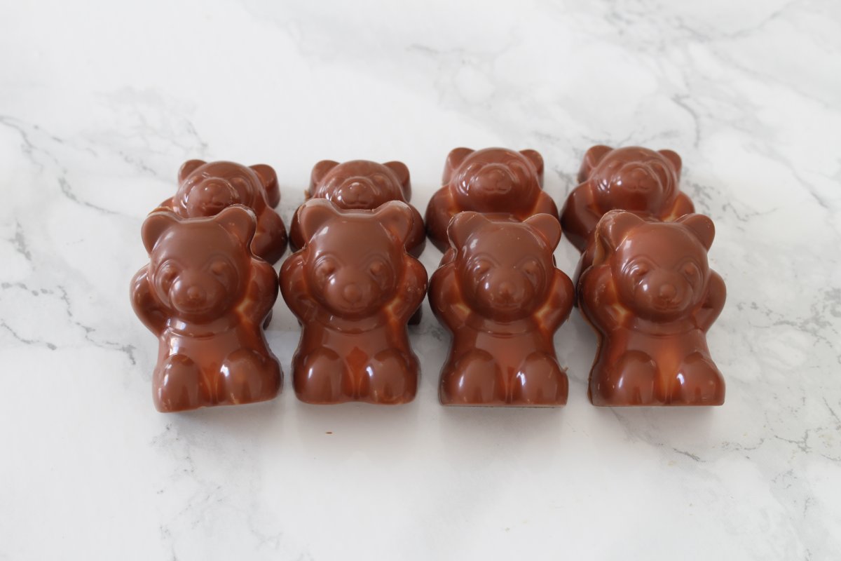 Des oursons en chocolat au lait fourrés de guimauve à la vanille.